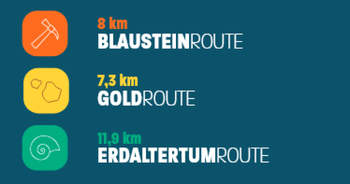 Das Ergebnis dieser Arbeit sind 3 Wanderrouten mit Start am Schieferstollen in Recht, die seit diesem Wochenende umfassend entdeckt werden können. Es handelt sich um Rundwanderungen mit jeweils einer Länge zwischen 7 und 12 km, die weitgehend auf dem Wanderknotenpunktsystem angelegt wurden. Die Routen bieten insgesamt über 40 Informationstafeln in drei Sprachen, die sowohl der hiesigen Bevölkerung als auch Touristen viel Wissenswertes zu den Themen Blaustein, Gold und Erdaltertum häppchenweise nahebringen. Wer sich noch weiter in die Themen vertiefen möchte, kann anhand von QR-Codes auf den Tafeln zusätzliche Informationen abrufen.
